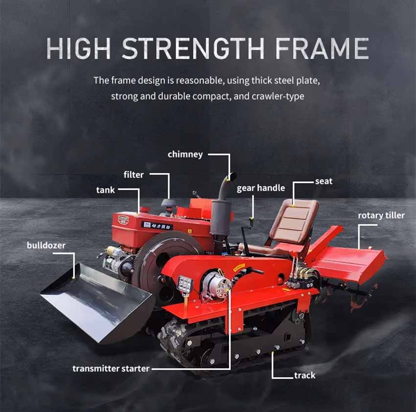 Multifunctional crawler micro-cultivator is a kind of widely-used agricultural machinery. Compared to tractors, cultivators are smaller and less expensive, powered by a diesel engine. compared hand type, it is high efficiency, less labor.