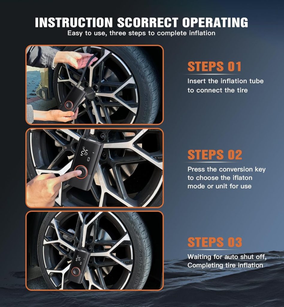 120W Cordless Air Compressor – Portable Tire Inflator for Car, Bike, SUV & Off-Road | Smart Digital Gauge, Auto Stop & ABS Explosion-Proof (Boxed)