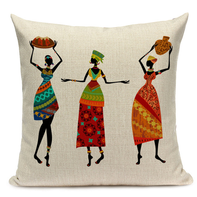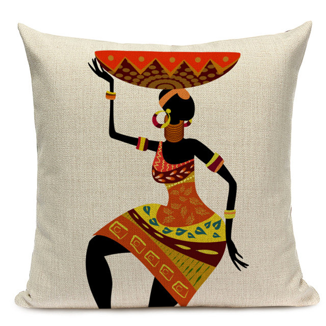 African Woman Print Pillow Cover 45x45cm – Tribal Throw Pillow Case for Sofa | Boho Home Decor Cushion Cover with Zipper Closure