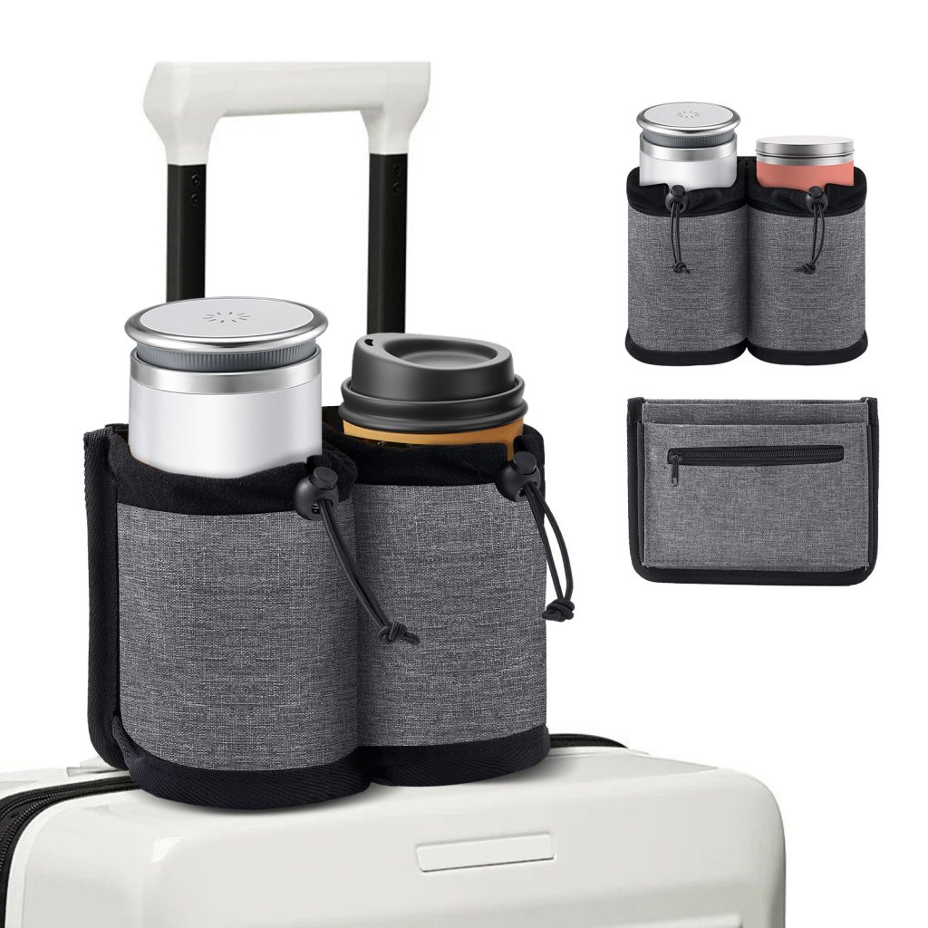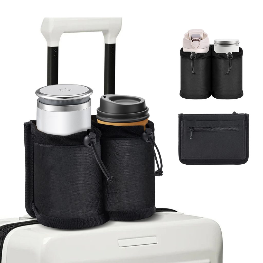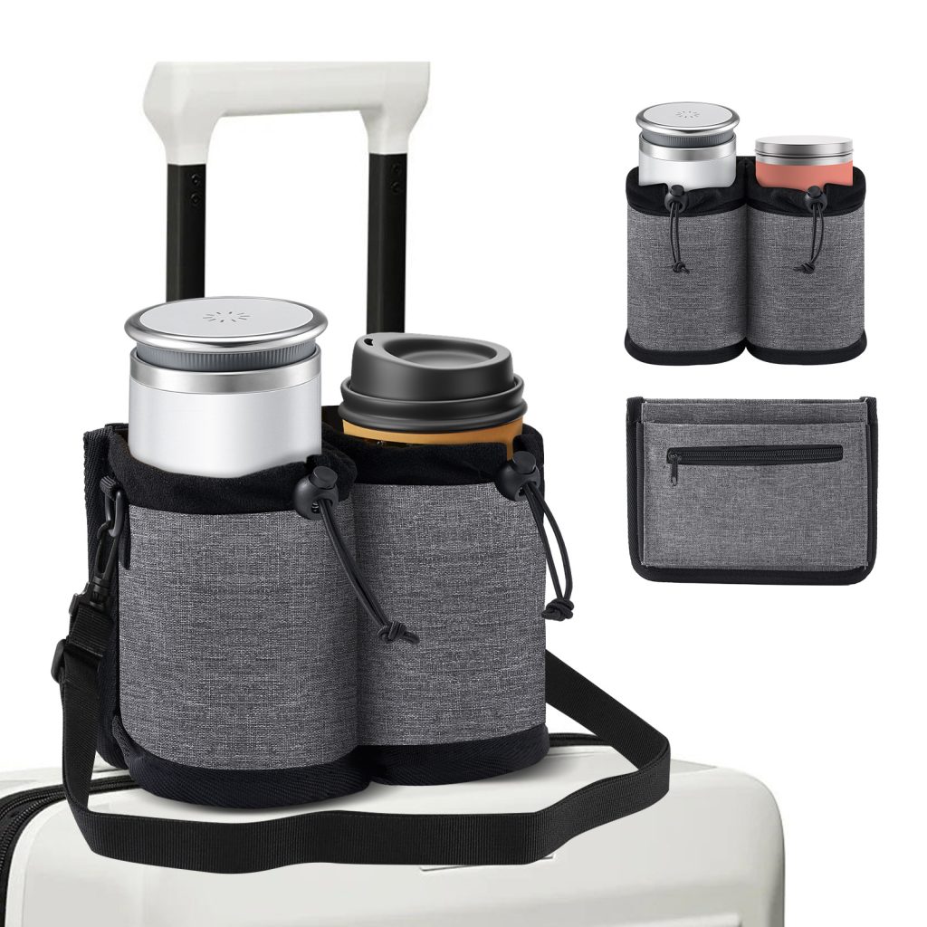 Hands Free Cup Holder for Luggage & Car Travel – Leakproof Drink Carrier Bag with Adjustable Strap