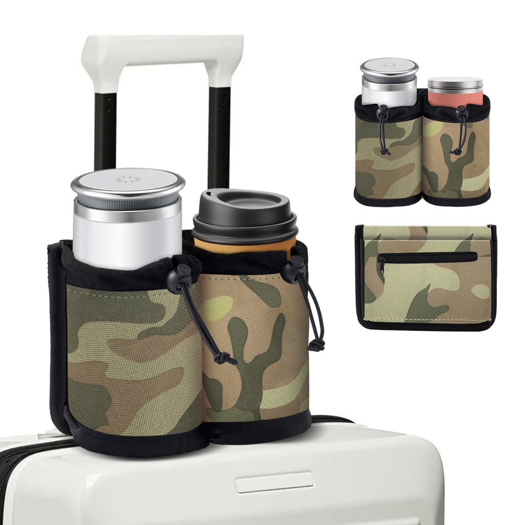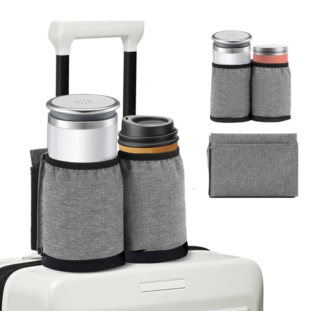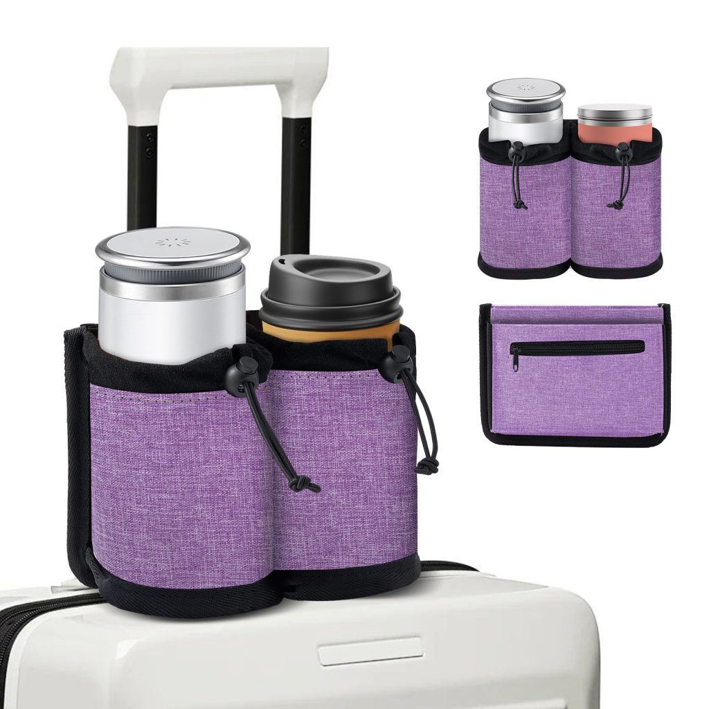 Hands Free Cup Holder for Luggage & Car Travel – Leakproof Drink Carrier Bag with Adjustable Strap