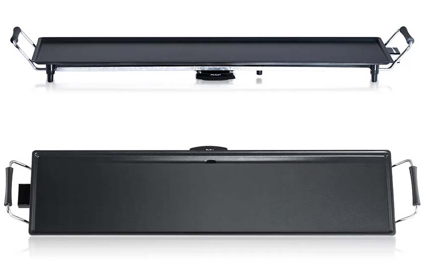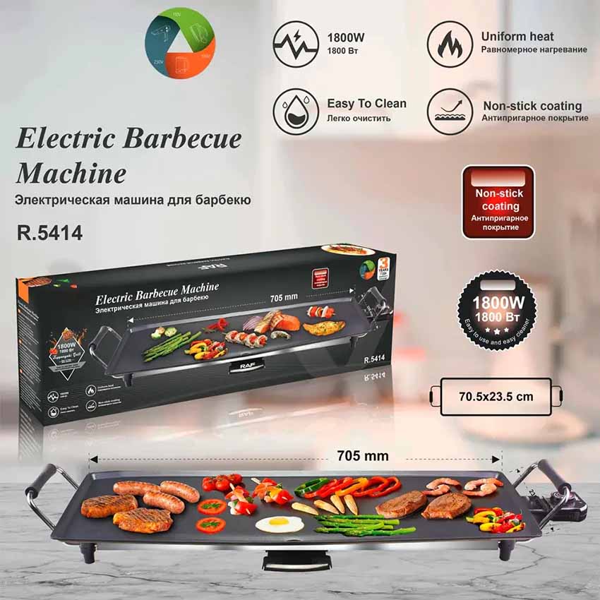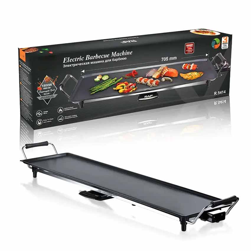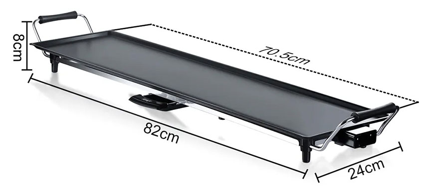 • You can throw steaks, veggies, ribs and salmon on the large 70cm grilling surface at once. And thanks to its reliable nonstick coating, you’ll never have to deal with stuck food again. Plus, there’s a removable 220V/1800W thermostat control with 5 adjustable settings.
