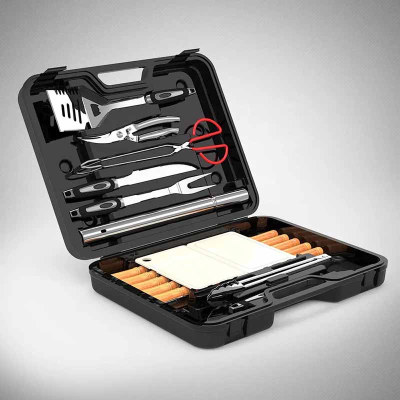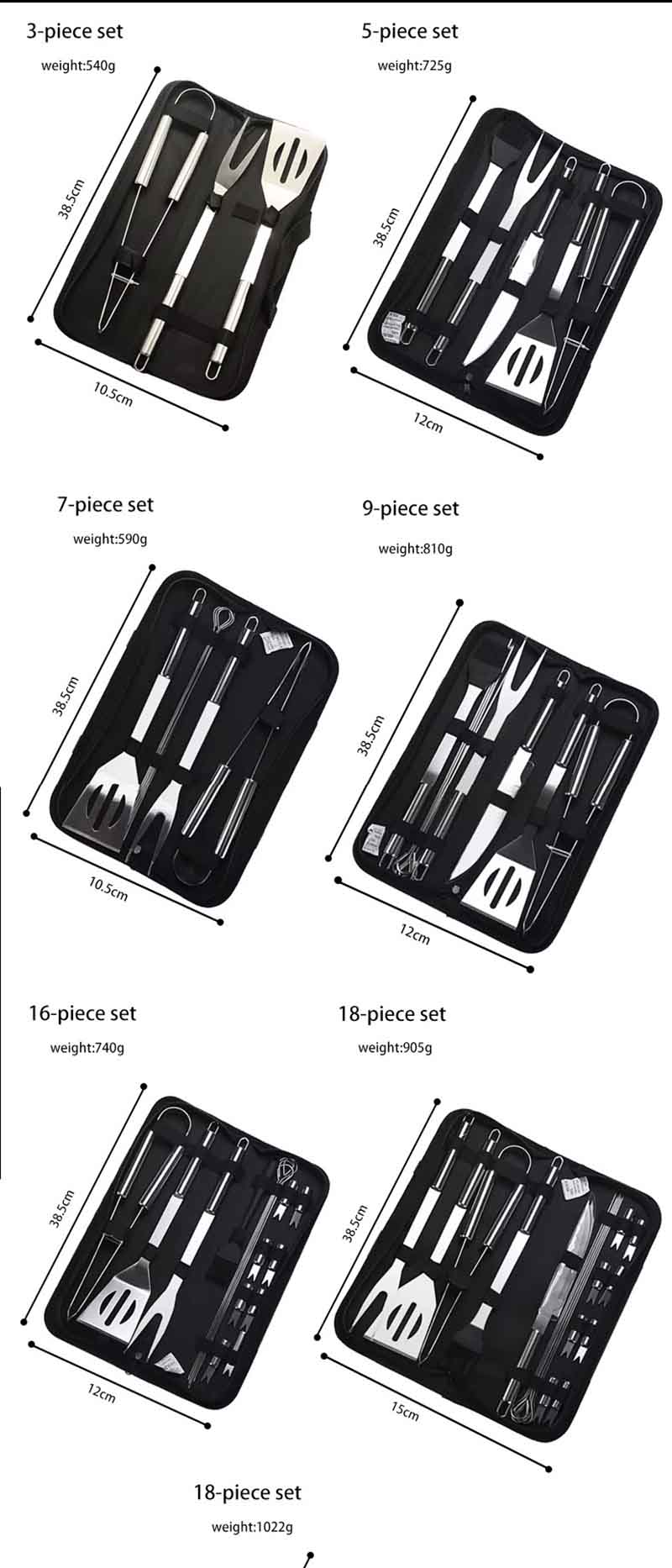 keywords: BBQ tools kit, Grill tool kit, stainless steel grill tool