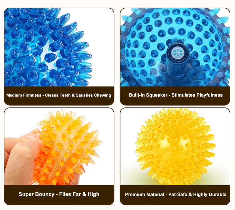 Squeaky Dog Ball – Durable Chew Proof TPR Bouncy Ball for Aggressive Chewers – Interactive Spiky Dental Ball Toy (Mini, Small, Medium, Large)