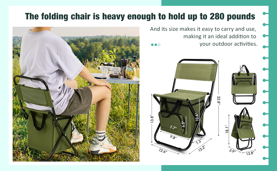 Portable Folding Chair with Insulated Cooler & Storage Box – Lightweight Sturdy Outdoor Camping Fishing Chair