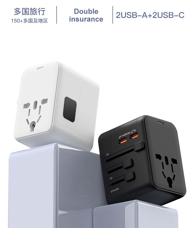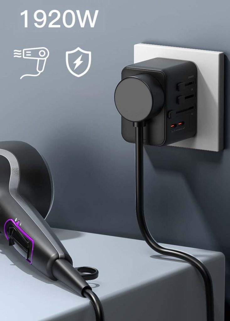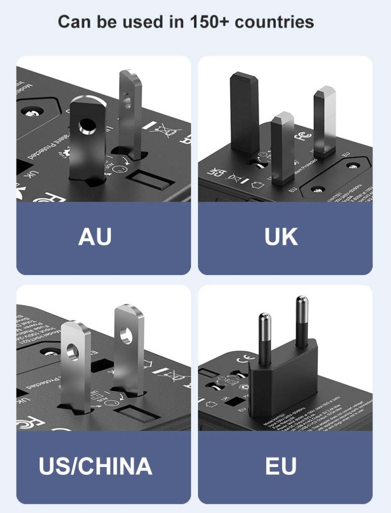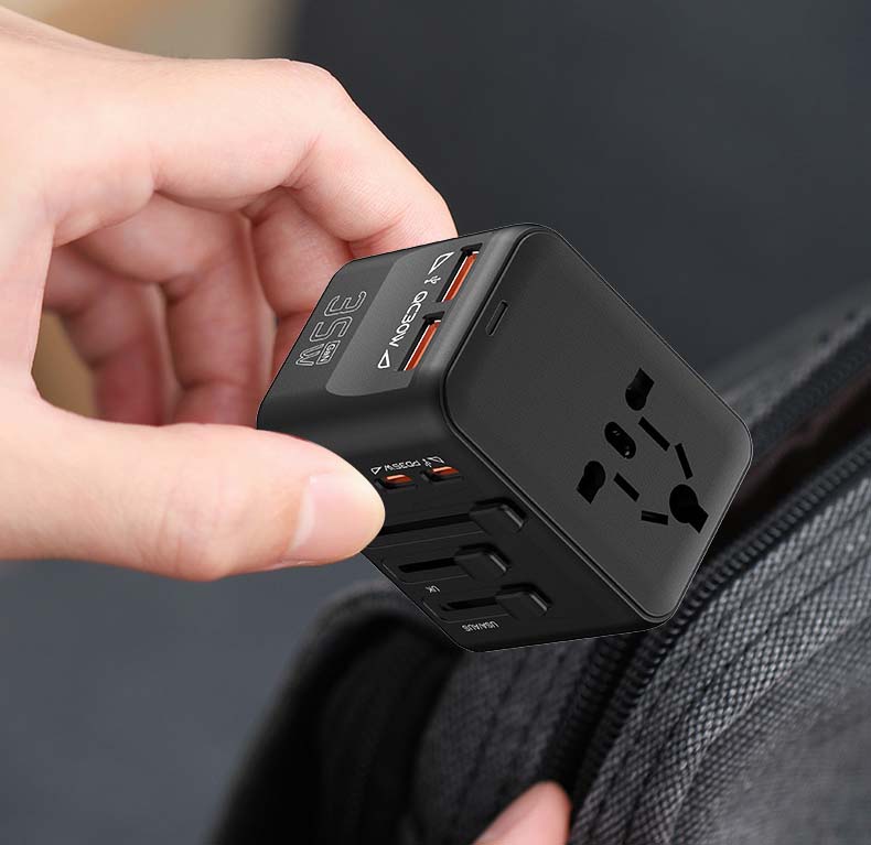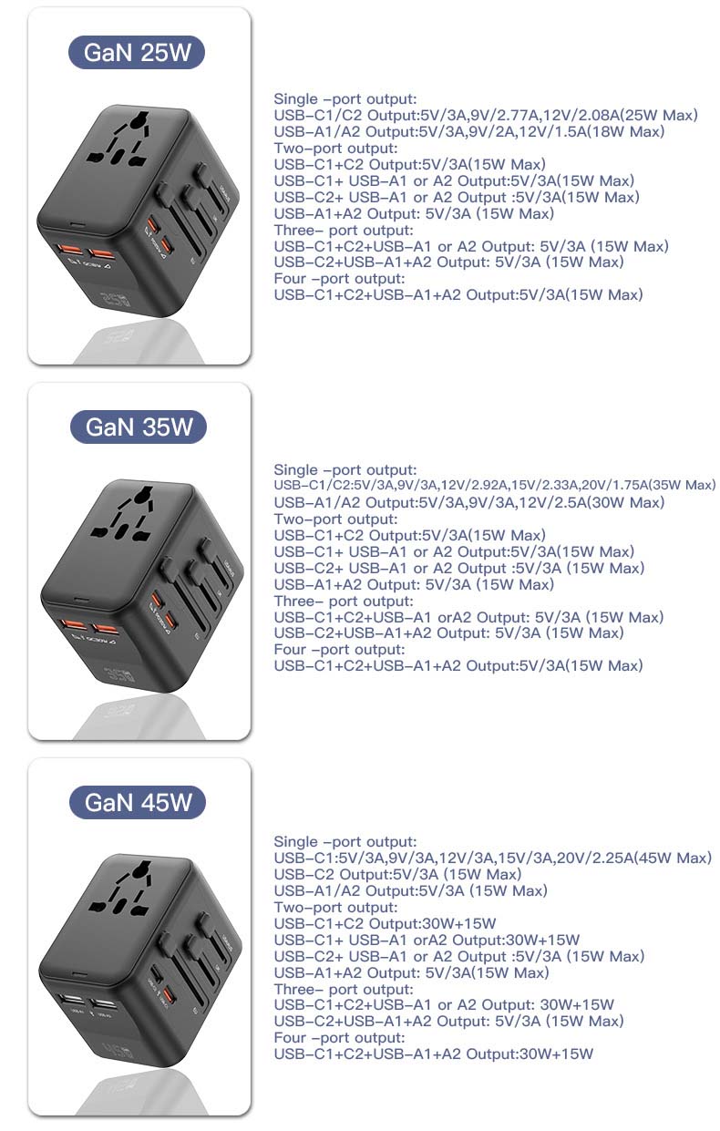GaN Global Travel Adapter 45W – Universal All-in-One Power Converter with 25W/35W/45W Fast Charging | 150+ Countries USB-C PD & QC3.0