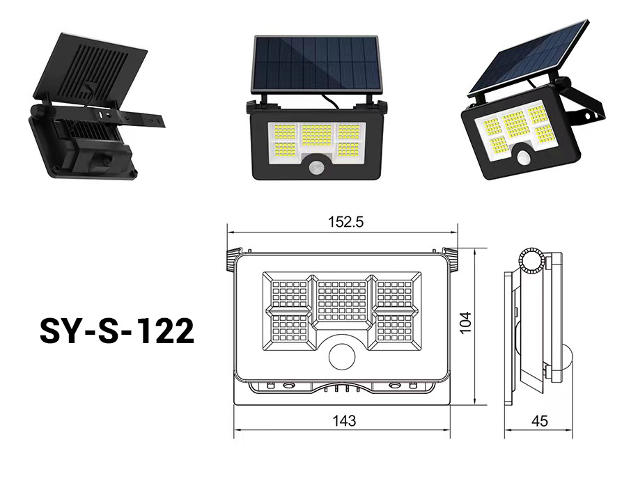| SY-S-122 | 5.5V/1.6W | 122PCS | IP65 | 2200mAH/3.7V | ABS+PC | 152.5*104*45mm |