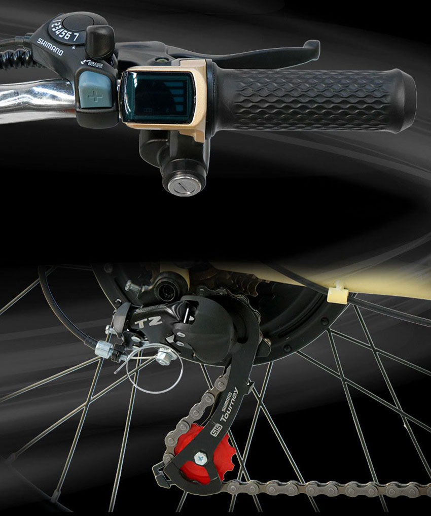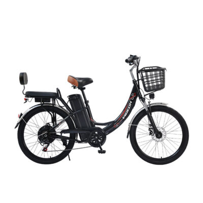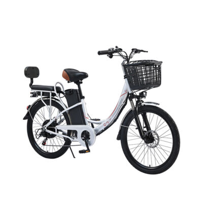 24-inch 48V Electric Bike – 60km Range w/ Removable Multi-Ah Battery | 350W Motor, Disc Brakes & 7-Speed | Commuter/City E-Bike (Black/Beige/Silver)