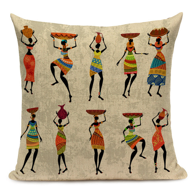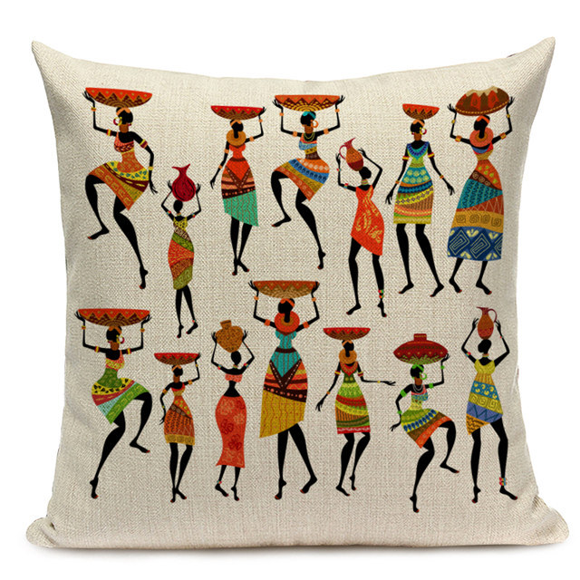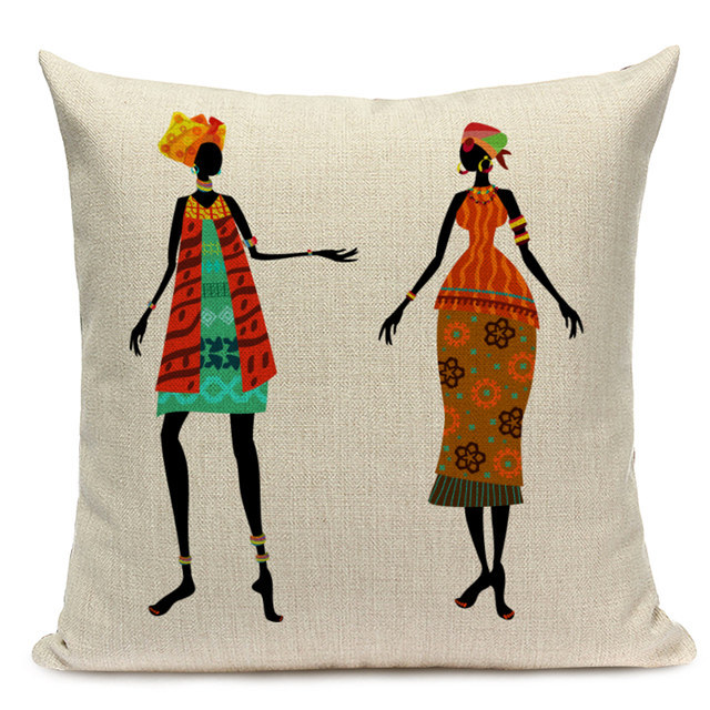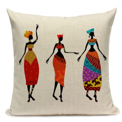 African Woman Print Pillow Cover 45x45cm – Tribal Throw Pillow Case for Sofa | Boho Home Decor Cushion Cover with Zipper Closure