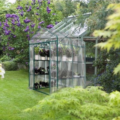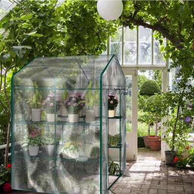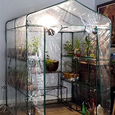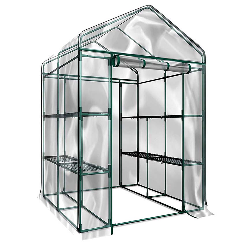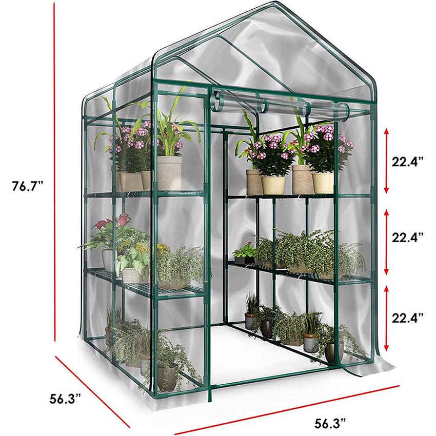 Heavy Duty Walk-in Greenhouse 56″x56″x76″ (4.6×4.6×6.3 FT) PE Kit | 8 Shelves w/ Mesh Windows | Backyard