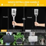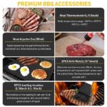 2PC grill tools: | 2 x Long-handled grill tongs & 9inch tongs with wide side and hollow design | 1PC grill accessories | Meat thermometer |
