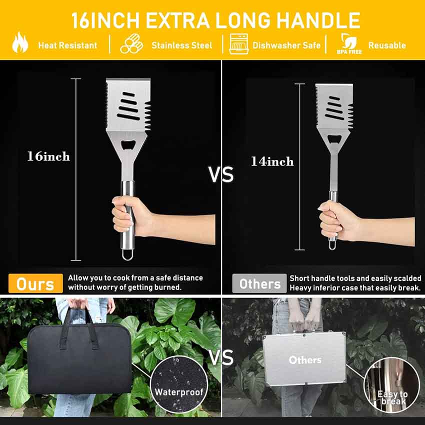 1PC grill tools: | Long-handled spatula | 2PCS grill utensils | Pepper/ salt shakers |