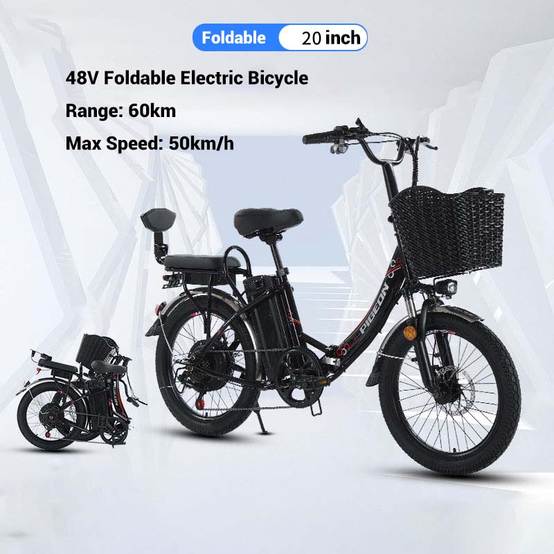 48V 20-inch Foldable Electric Bike – 350W Folding E-Bike w/Removable Battery | Commuter & Off-Road | 40-60 Mile Range