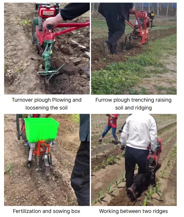 • Accessories: plough,Fertilization and sowing ,The three-tooth hoe