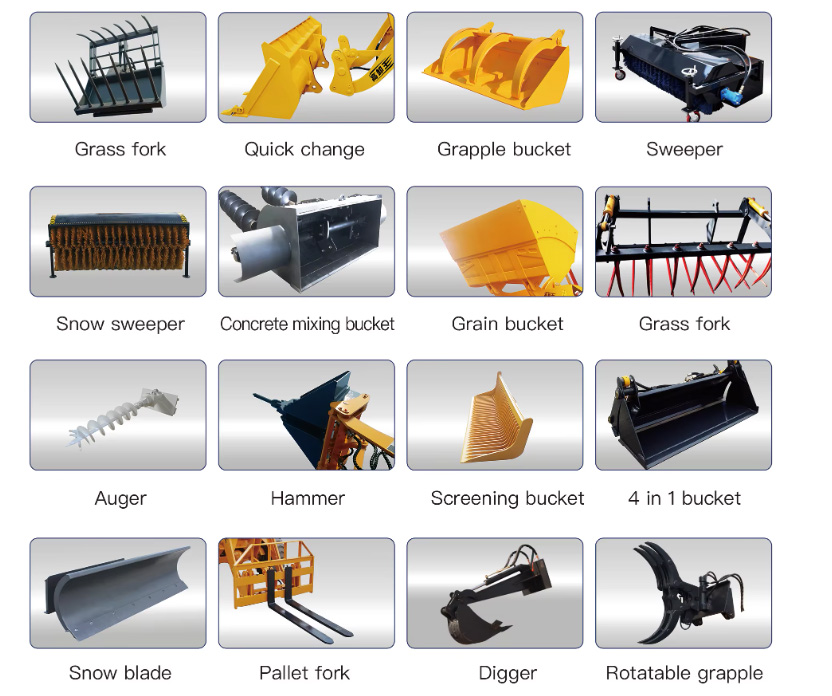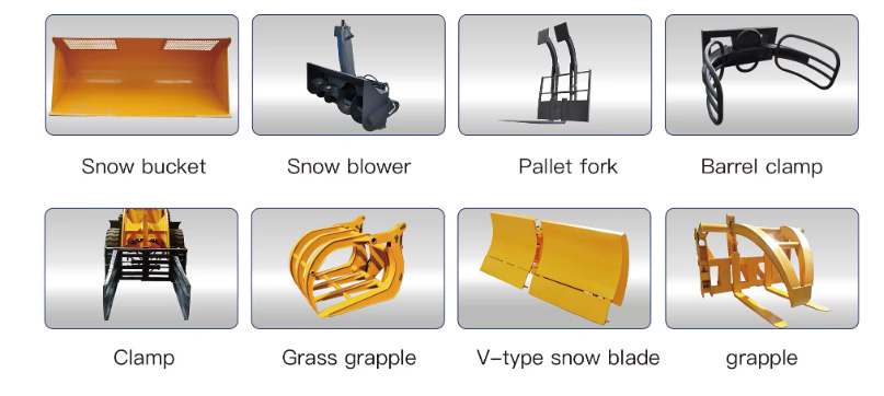 —Attachments, the quick hitch and bucket are included as standard, and a wide variety of other attachments are available to meet different work needs.