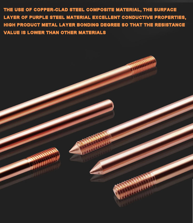 Thread with a point earth rod can be connected to two or more ground rods by means of coaxial connector. The ground The depth can be flexibly configured to meet The company requirements of The same project.